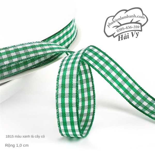 1cm x 45M Ruy băng Caro Xanh Lá Cỏ