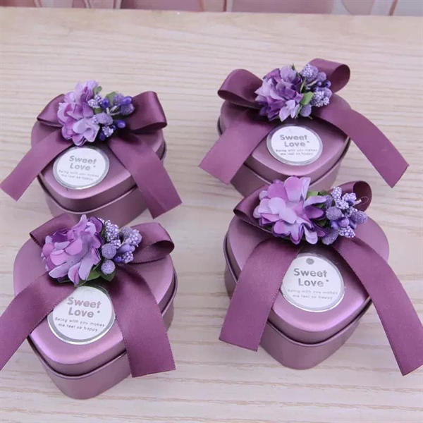 Hộp thiếc Tim kèm nơ 12.5×11.5×4.5cm màu Tím – Cái