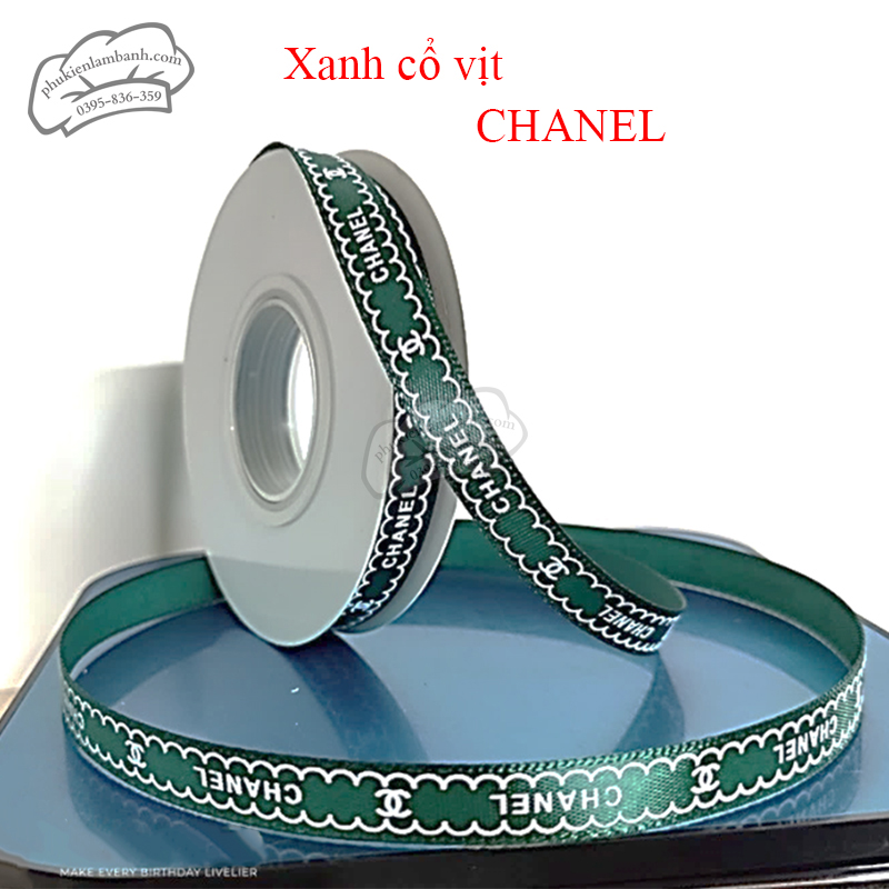 Ruy băng Chanel 1cm xanh cổ vịt