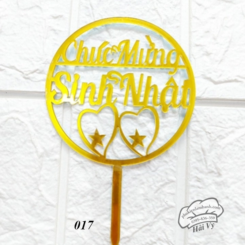 Thẻ cắm mica 10 cái Chúc mừng sinh trật tròn Vàng – Gói