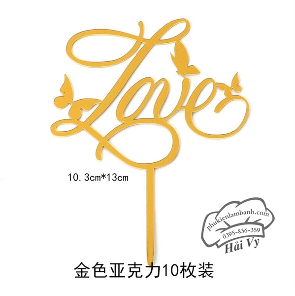 Thẻ cắm mica 10 cái Love gắn hình con bướm Vàng – Gói
