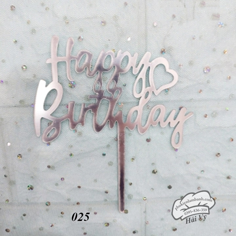 Thẻ cắm mica 10 cái HPBD bạc tim bạc – Gói