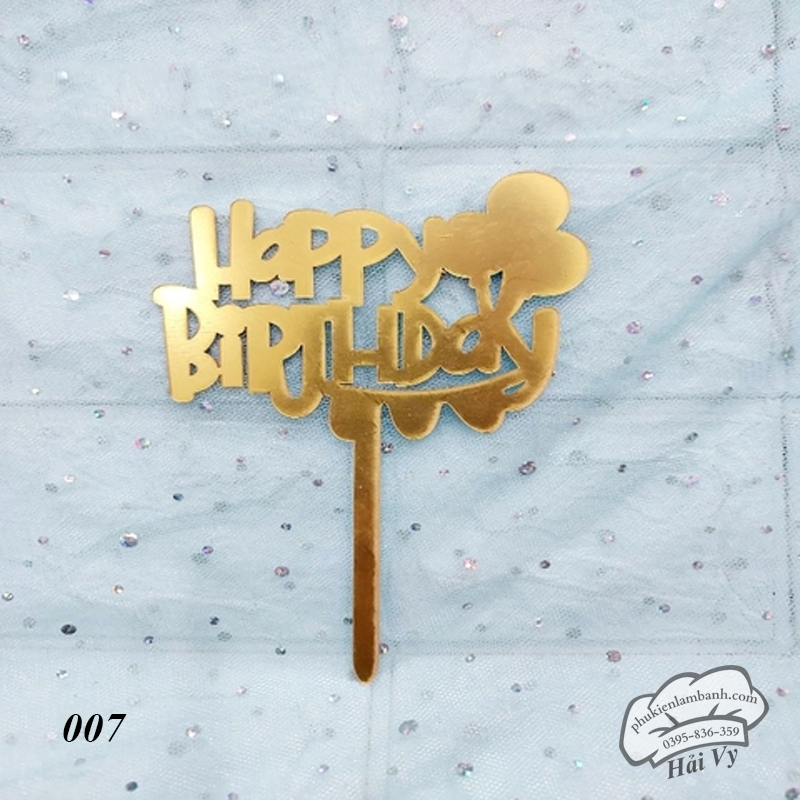 Thẻ cắm mica 10 cái HPBD bóng bay Vàng – Gói