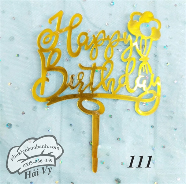 Thẻ cắm mica 10 cái HPBD chùm bóng Vàng – Gói