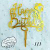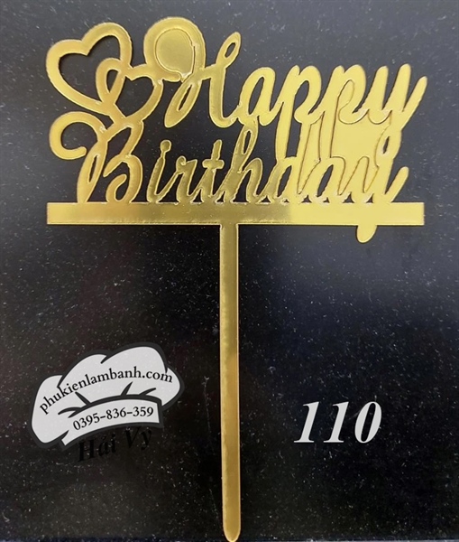 Thẻ cắm mica 10 cái HPBD kẻ Vàng trái tim Vàng – Gói