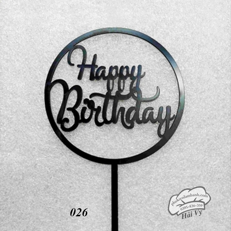 Thẻ cắm mica 10 cái HPBD tròn đơn màu đen – Gói