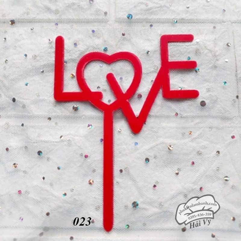 Thẻ cắm mica 10 cái Love ngang đỏ – Gói