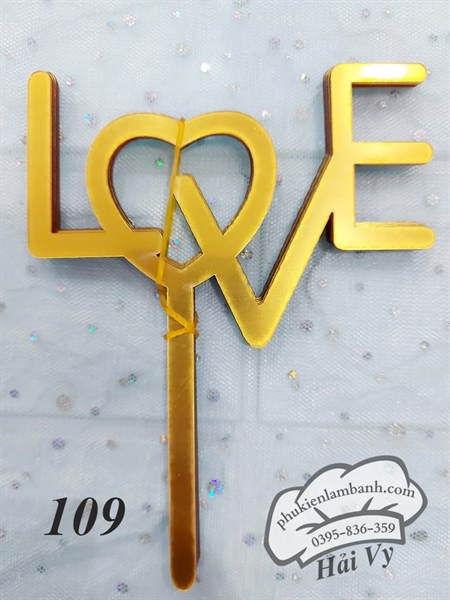 Thẻ cắm mica 10 cái LOVE ngang Vàng – Gói